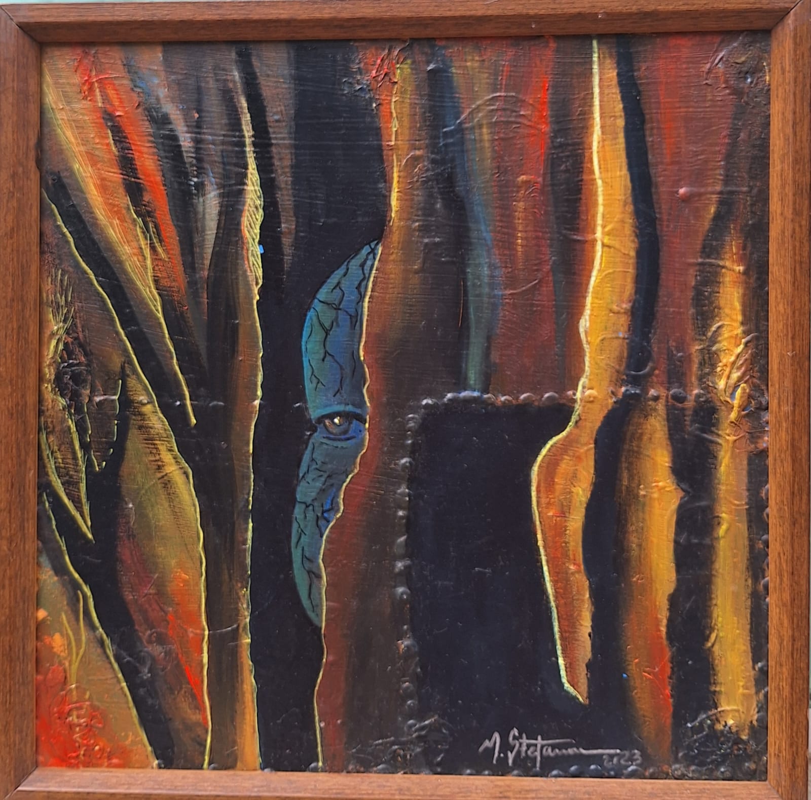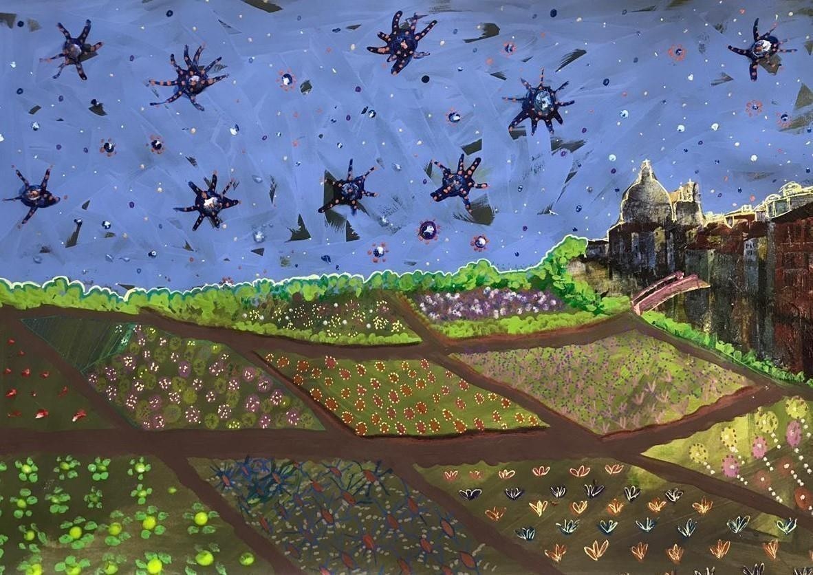 Seu processo plástico parte da pintura, do desenho e da colagem, expressando as ações do cotidiano, se apropriando das imagens e ressignificando as vivências e emoções no âmbito da contemporaneidade...